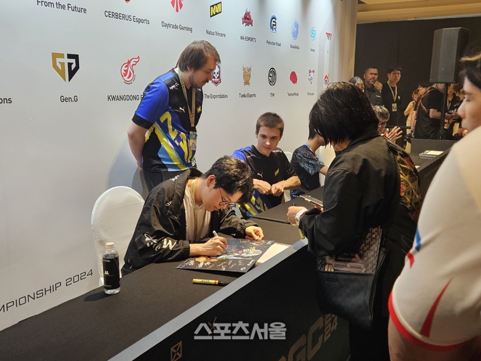 수류탄을 던지는 체험도 있다. 경기 내에 있는 건물을 구현, 창문 안으로 수류탄을 넣으면 선물을 줬다. 1일차에 선수단 팬 사인회도 성황이다. 광동 프릭스 ‘살루트’ 우제현이 참석했다. 환하게 웃으며 팬들과 교감했다.