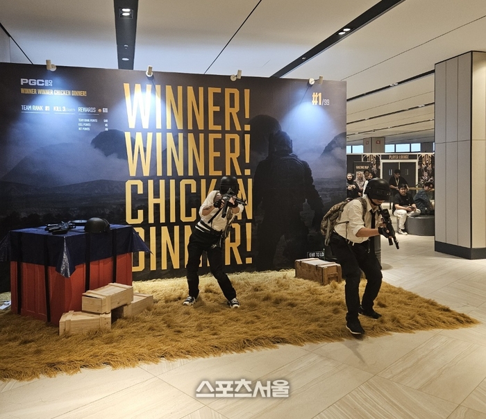 ‘팬 퍼스트’도 빛났다. 경기장 곳곳에 이벤트 섹션을 열었다. 배틀그라운드 코스튬 플레이하는 인원이 상시 배치됐다. 포복을 하고, 총을 겨누는 등 경기 장면을 그대로 재현했다. 관중들도 같이 사진을 찍으며 웃었다.