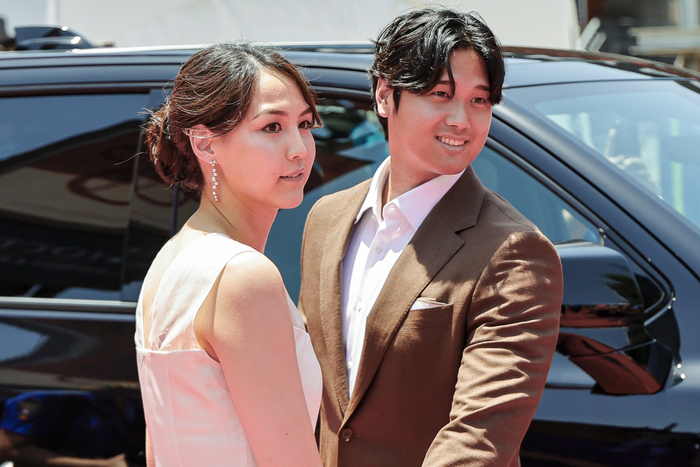 오타니는 지난 2월 일본여자프로농구 선수 출신인 다나카 마미코(28)와 결혼을 발표했다. 그리고 3월 MLB 개막 서울 시리즈를 통해 다나카를 첫 공개했다. 지난달 LA 다저스의 월드시리즈(WS) 우승 축하 행사에 아내 마미코와 함께 했다.
