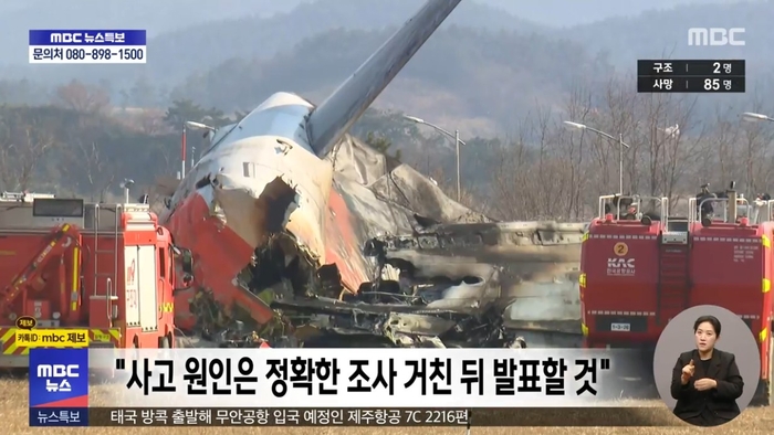 전남소방본부 등에 따르면 이날 오전 9시7분께 태국 방콕발 제주항공 7C2216편 항공기가 무안공항 활주로로 착륙을 시도하다가 추락했다. 오후 12시49분 현재 사망자는 85명(남 39명, 여 46명)인 것으로 확인됐다. 생존자는 22세 남성 1명, 25세 여성 1명이다. 2명 모두 승무원이며, 여객기 꼬리 부분에서 구조됐다. 이들을 제외한 탑승객은 대부분 사망한 것으로 추정되고 있다.