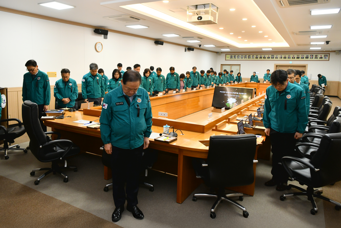 [스포츠서울ㅣ김기원기자]속초시는 12월 30일 확대간부회의 시작에 앞서 무안국제공항 여객기 참사 희생자를 추모하기 위한 묵념을 진행했다. 시에서는 국가애도기간 중 개최 예정인 행사에서도 희생자를 위한 묵념을 진행해 애도를 표하고 유가족에게 위로의 뜻을 전할 방침이다.