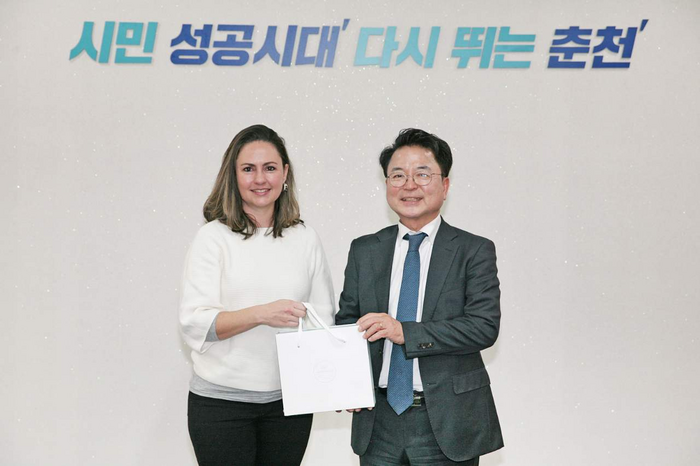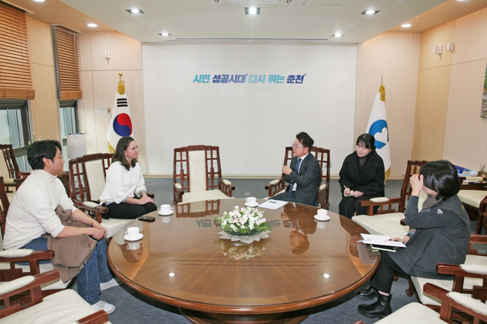 [스포츠서울ㅣ춘천=김기원기자]육동한 춘천시장은 30일 접견실에서 춘천 기업인들과의 협력과 경험 공유 기회를 찾기 위해 춘천을 찾은 데보라 멜리사 보트로(Deborah Melissa Bottreau) 아세안 청년 기업가 협회장과 환담을 가졌다.