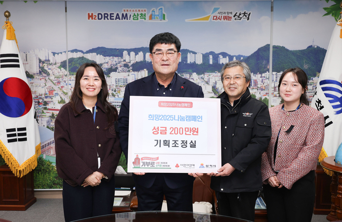 [스포츠서울ㅣ김기원기자]삼척시는 강원특별자치도 주관 규제혁신 우수시군으로 선정되어 받은 포상금 2백만 원(강원상품권)을 연말연시 관내 어려운 이웃을 위해 사용해달라며 사회복지공동모금회에 기탁했다.