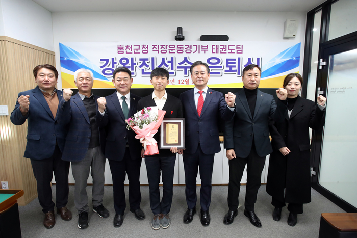 [스포츠서울ㅣ김기원기자]홍천군은 12월 31일 홍천군청에서 한국 태권도 품새 종목 간판 강완진 선수의 공식 은퇴식을 열고 선수 생활의 마지막을 따듯하게 격려했다.