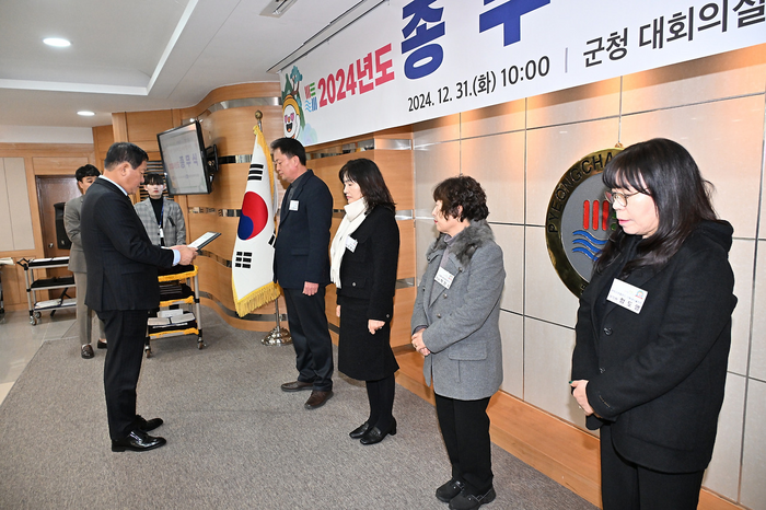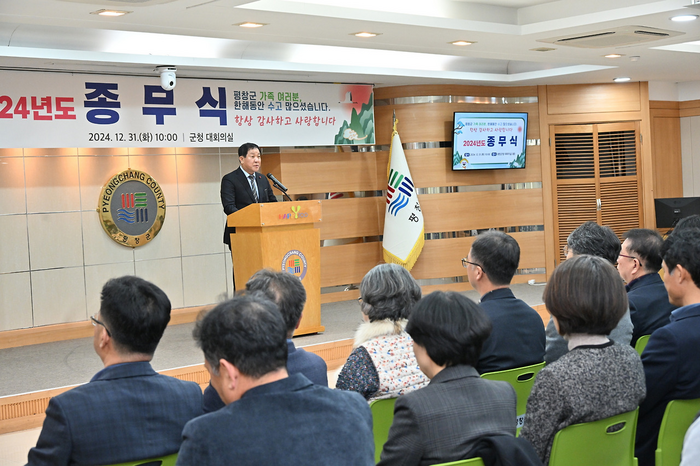 [스포츠서울ㅣ김기원기자]평창군 2024년 종무식 및 황성현 평창부군수 이임식이 31일 군청 대회의실에서 심재국 평창군수를 비롯한 공무원과 수상자들이 함께한 가운데 열렸다.