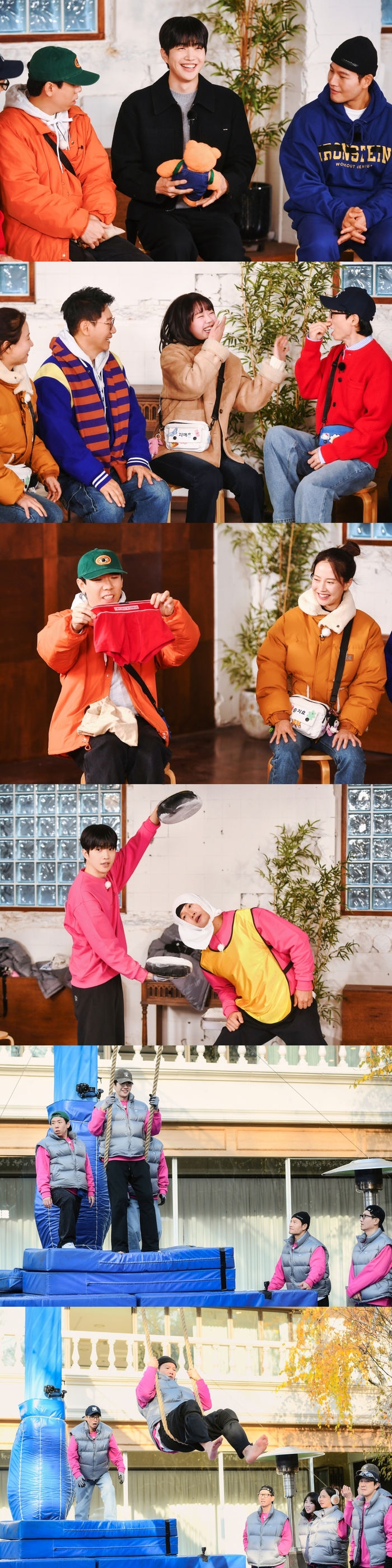 한편, 제작진은 멤버들의 특급 미션을 위해 김이 폴폴 나는 야외 풀장과 밧줄 그네를 준비했다. 해당 미션은 그네를 이용해 물풀 사이에 있는 디딤대에 착지하는 것으로, 겁 없는 김종국마저 막상 그네를 타자 생각보다 아찔한 높이와 속도감에 “그만 밀어!”라고 외칠 정도였다. 연말의 대미를 장식할 미션인 만큼 순금 배지 상품도 걸려 있어 더욱 기대를 모은다.