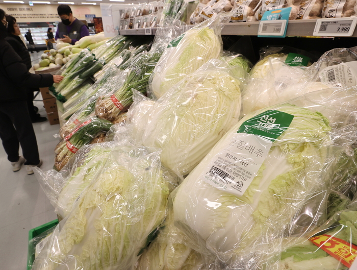5일 한국농수산식품유통공사(aT)에 따르면 지난 3일 기준 배추 평균 소매가격은 한 포기에 5027원으로 1년 전보다 58.9%, 평년 대비 33.9% 상승했다. 여기서 평년 가격은 2020년부터 지난해까지의 최대·최소값을 제외한 3년 평균이다.