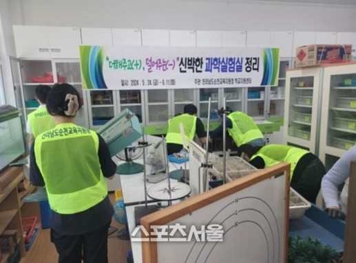 순천교육지원청은 라벨링 작업을 통해 교구 관리 효율성을 높였고, 과학실험실의 쾌적하고 안전한 환경 조성을 위해 과학교구 정리와 폐기물 처리를 지원했다.