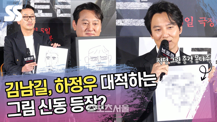 [스포츠서울ㅣ윤수경 기자] 배우 하정우, 김남길, 유다인, 정만식, 임성재가 6일 오전 서울 광진구 롯데시네마 건대입구에서 열린 영화 ‘브로큰’ 제작보고회에서 몽타주를 공개하고 있다.