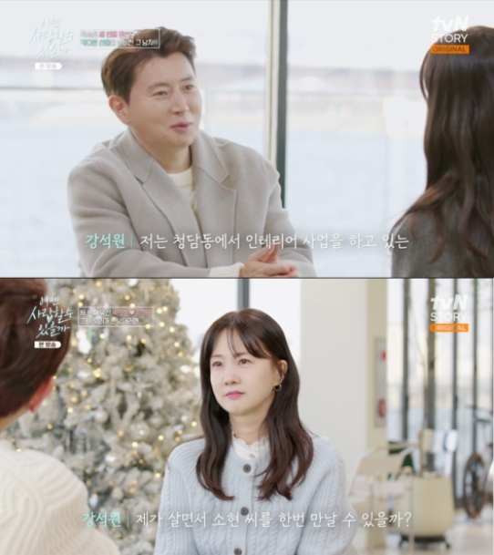 박소현은 6일 방송된 tvN STORY 예능 프로그램 ‘이젠 사랑할 수 있을까’에서 6살 연하의 맞선남 강석원과 설레는 첫 만남을 가졌다.