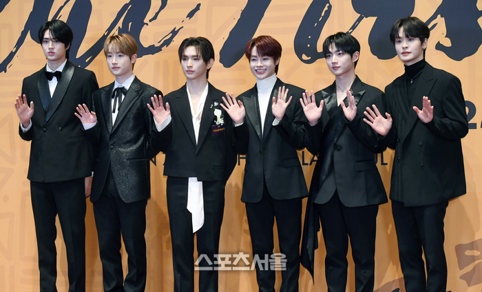 템페스트가 7일 서울 중구 신라호텔에서 진행된 2025 대한민국 퍼스트브랜드대상 시상식에 참석하면서 포토월 앞에서 취재진을 향해 포즈를 취하고 있다. 2024. 1. 7.