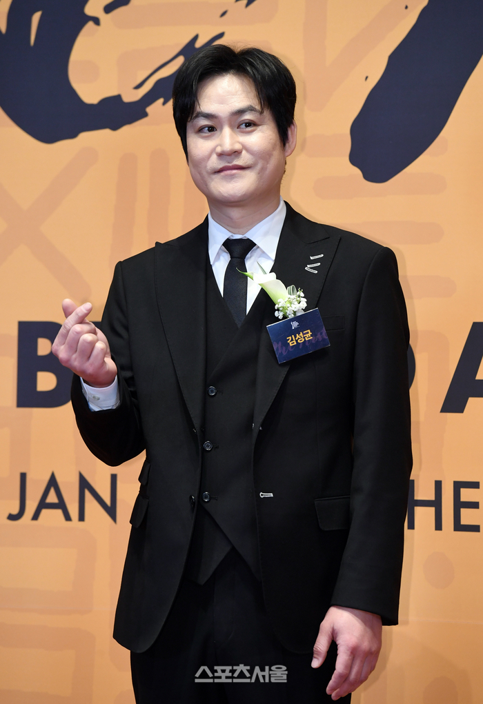 배우 김성균이 7일 서울 중구 신라호텔에서 진행된 2025 대한민국 퍼스트브랜드대상 시상식에 참석하면서 포토월 앞에서 취재진을 향해 포즈를 취하고 있다. 2024. 1. 7.