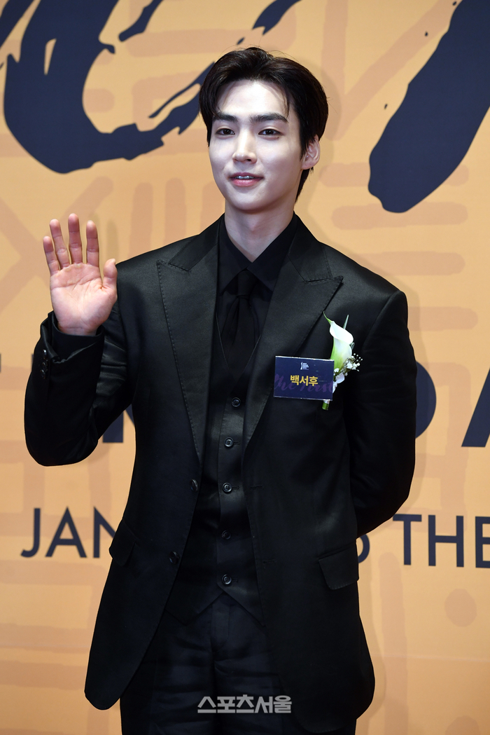 배우 백서후가 7일 서울 중구 신라호텔에서 진행된 2025 대한민국 퍼스트브랜드대상 시상식에 참석하면서 포토월 앞에서 취재진을 향해 포즈를 취하고 있다. 2024. 1. 7.