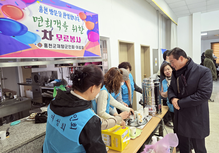 [스포츠서울ㅣ김기원기자]신영재 홍천군수는 1월 8일 영귀미면 생활체육공원 다목적실에서 열린 홍천군재향군인회(회장 이효식)와 여성회(회장 마정희) 주관, 軍(군) 면회객을 위한 ‘차’ 무료 봉사활동에 참석해 재향군인 회원들을 격려하고 전국 각지에서 방문한 면회객들을 반갑게 맞이했다.
