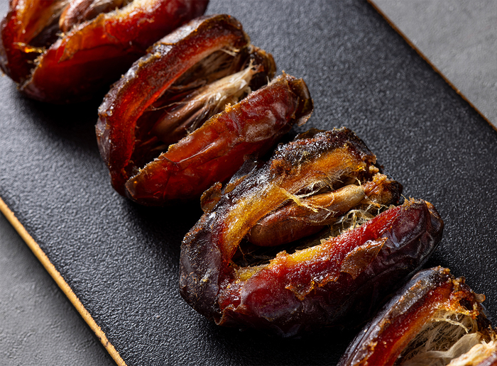 대추야자는 달콤 촉촉한 흑 곶감을 연상하는 맛으로, 25브릭스(Brix) 이상의 달콤함을 지녔다. 그럼에도 당절임 식품이 아닌 자연에서 온 그대로의 과일로, 무가당, 무농약, 무방부제인 자연에서 온 달콤 촉촉한 천연 건조과일이다.