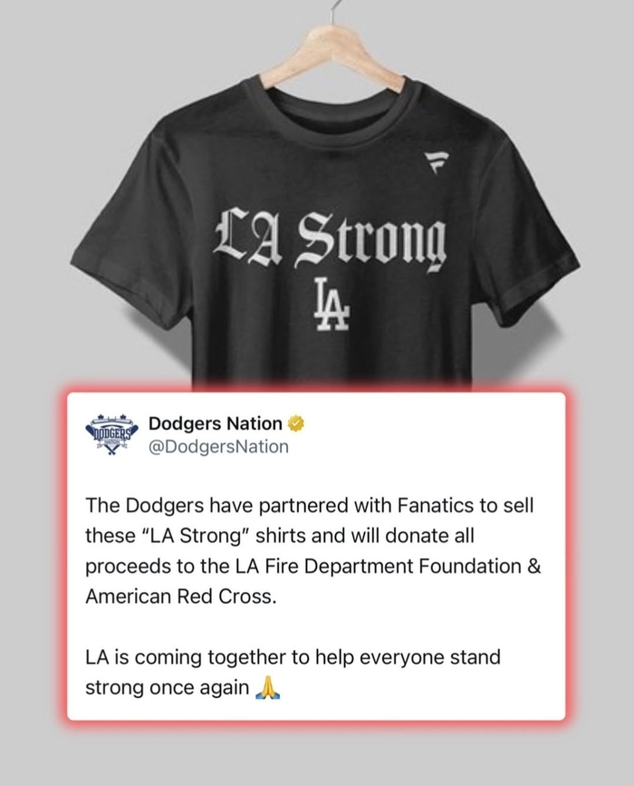 이들 구단은 LA 스트롱이 새겨진 티셔츠 판매에 나섰고, 수익금은 미국 적십자와 LA소방국 재단에 기부하기로 했다.