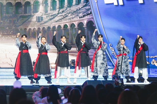 ‘미스터트롯3’ 대학부는 여기에 춤을 덧입혔다. 여성 가수들이 리메이크하며 불러온 것과 달리 이들은 조선시대 무사복을 입고 7인이 토해내듯 무대를 소화했다. 강성규는 바리톤으로, 이수호는 테너의 굵은 저음으로 도입부를 조성했다. 이어 최재명이 중심을 잡고, 남승민과 윤동진이 경쾌한 목소리로 노래를 최고조로 이끌었다. 원정인과 나현진이 클라이막스를 장식했다.