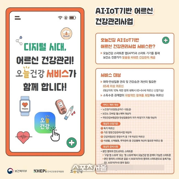 이 사업은 스마트폰 앱 ‘오늘 건강’과 스마트기기를 통해 간호사, 물리치료사, 영양사 등 각 분야 건강 전문가들이 6개월간 비대면으로 대상 노인에 맞춤형 건강관리를 해주는 서비스다.