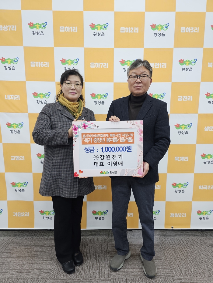 [스포츠서울ㅣ김기원기자]강원전기(대표 이영애)는 14일 횡성읍행정복지터를 찾아 ‘독거 중장년 봄여름가을겨울 반찬지원’사업에 100만 원을 기탁했다.