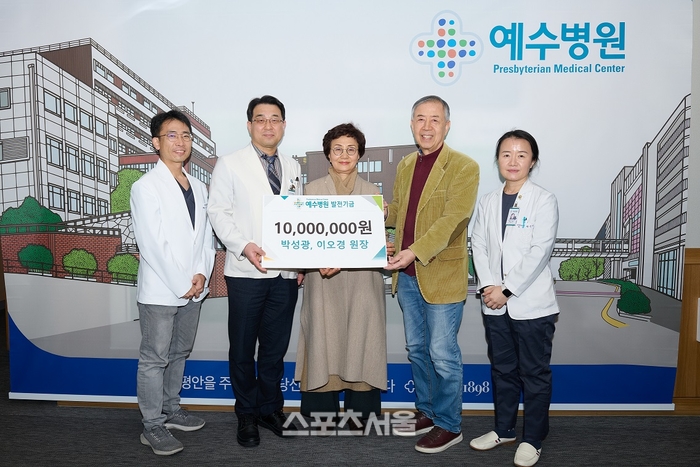 [스포츠서울 l 전주=고봉석 기자] 전주예수병원(신충식 병원장)은 14일 박성광 함께하는내과 원장과 이오경 전 예수병원 소아청소년과 과장이 예수병원을 방문해 병원 발전기금 1천만 원을 기탁했다.