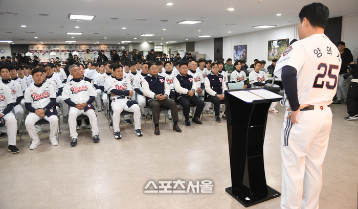 스포츠 | 야구 [포토] 2025년 주장 맡은 등번호 ‘25’ 양의지 입력2025-01-15 11:53:02 북마크 페이스북 트위터 SNS 더보기 가글자크기설정 인쇄 SNS 더보기 닫기 네이버밴드 네이버블로그 URL복사 글자크기 설정 메뉴 닫기 글자크기 설정 시 다른 기사의 본문도동일하게 적용됩니다. 가 가 가 가 가 두산 주장 양의지가 15일 잠실야구장에서 열린 창단기념식 겸 시무식에서 인사말을 하고 있다.2025. 1. 15.잠실 | 최승섭기자 thunder@sportsseoul.com 기사추천 0