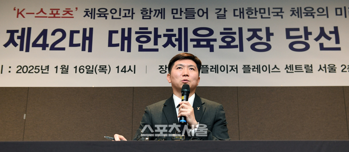 굉장히 소중한 시간이었다. 수많은 체육인과 긴밀하게 소통했다. 특히 9월9일 탁구협회장 사임한 뒤 다양한 체육인 목소리를 경청하고자 했다. 공약을 바로 내지 않은 건 (타 종목) 현장을 모르는 데 나만의 생각으로 하는 건 겸손하지 못하다고 여겼다. 선거 직후 기사를 봤는데 대부분 이변 표현을 써주시더라. 내가 어려울 것으로 예상하셨나보다. 난 (선거 기간) 세배를 300번 이상했고 선수, 지도자 1100여명에게 투표 독려 영상 내려고 8시간이상 찍었다. 타 후보가 못하는, 나만 할 수 있는 것으로 여겼다. (당선 직후) 기쁘지만 않았다. 무거운 책임감이 들었다. 이곳에 오기 전 문체부 유인촌 장관, 장미란 차관과 대화했다. 체육계 현실을 두고 고민했다. 지난 경험과 과정을 바탕으로 앞으로 두 배, 세 배 진정성을 보여 최선을 다하겠다. 최고로 부지런한 체육계 일꾼이 될 것이다. 여러분께서 내가 못했을 땐 심하게 꾸짖어달라. 현실에 안주하는 모습 보이면 전화해달라. 잘했을 땐 더욱더 부각해달라. 왜냐하면 체육계가 (지난해) 파리올림픽 이후 좋지 않은 이슈에 노출돼 있다. 열심히해서 기대에 부응하겠다.