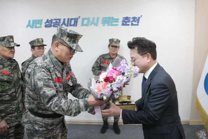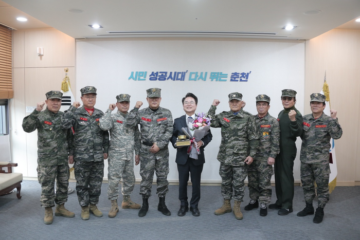 [스포츠서울ㅣ춘천=김기원기자](사)해병대 춘천시 전우회(회장: 조창호)는 16일 육동한 춘천시장을 찾아 신년 인사를 하고 지역의 안전과 협력에 대한 지원에 고마운 마음을 담아 감사패를 전달했다.