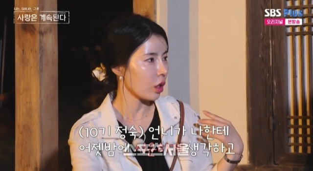 16일 방송된 ‘나는 SOLO, 그 후 사랑은 계속된다(나솔사계)’에서 10기 영숙은 미스터 백김이 자신과의 데이트를 선택하지 않은 이유로 “언니(10기 정숙)가 ‘오늘 가서 (미스터 백김을) 혼내주고 와야겠다. 오빠랑 관계를 원만하게 풀고 와야겠다’고 하는데 내가 거기다 대고 어떻게 따라가냐. 난 그런 상황에 끼는 게 불편하다”고 핑계를 댔다.