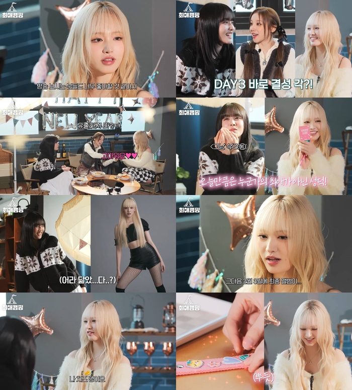세 사람은 록밴드 콘셉트로 무대를 구상하며 리즈는 피아노, 우기는 기타, 윤은 드럼을 맡기로 했다. 이에 우기는 “우리 완전 DAY3 같다”며 웃음을 터뜨렸고, 셋은 “꼭 함께하자”며 미래를 약속했다.