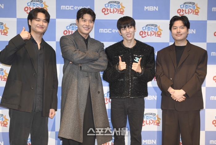 황성재,신정윤,동우,지조 가 17일 서울 상암동 스탠포드호텔에서 열린 MBC에브리원-MBN 토요 예능 ‘다 컸는데 안 나가요’ 제작발표회에서 포토타임을 갖고 있다.