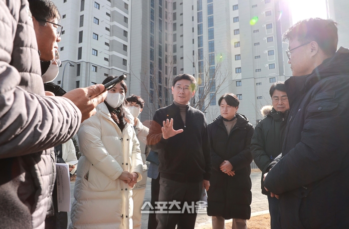〔스포츠서울│용인=좌승훈기자〕이상일 용인특례시장은 지난해 12월 3일, 28일에 이어 18일 세번째로 부실공사 문제로 입주예정자들의 불만을 사고 있는 처인구 양지면 경남아너스빌 디센트 공동주택단지 건설현장을 찾아 하자보수 상황을 점검하고 공사 관계자, 입주예정자들과 간담회를 가졌다.