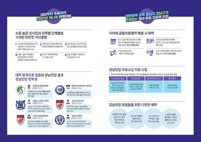 강남인강은 학력 보완 교육 등 각종 공교육 보완을 목적으로 2004년부터 중·고교생에게 1,318개의 강좌를 연 5만원에 무제한으로 제공하는 강남구청 직영 교육플랫폼이다.