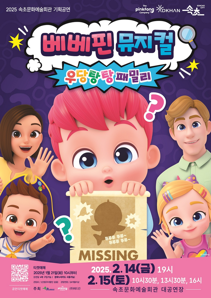 [스포츠서울ㅣ김기원기자]베베핀 뮤지컬 ‘우당탕탕 패밀리’가 오는 2월 14일과 15일 이틀간 속초문화예술회관에서 관객들과 특별한 만남을 갖는다.