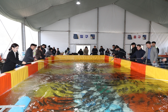 이번 방문은 도내 타시군 겨울축제 비교견학을 통해 인제군 빙어축제 등 문제점 보완 및 축제의 객관적인 평가 분석 목적으로 2025 홍천군 꽁꽁축제장을 방문하였으며, 홍천군의회 박영록 의장, 최이경 부의장, 용준식, 이광재, 김광수, 용준순, 나기호 의원 및 홍천군 꽁꽁축제 관계자의 안내로 맨손인삼 송어잡기, 얼음낚시터, 부교낚시터, 실내 낚시터를 견학·체험했다.