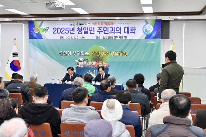 전국 | 강원 김명기 횡성군수, 2025년 청일면 주민과의 대화 입력2025-01-21 16:05:09 북마크 페이스북 트위터 SNS 더보기 가글자크기설정 인쇄 SNS 더보기 닫기 네이버밴드 네이버블로그 URL복사 글자크기 설정 메뉴 닫기 글자크기 설정 시 다른 기사의 본문도동일하게 적용됩니다. 가 가 가 가 가 [스포츠서울ㅣ김기원기자]김명기 횡성군수는 21일 청일면 행정복지센터에서 ‘2025년 청일면 주민과의 대화’를 주재했다.acdcok4021@sportsseoul.com 기사추천 0