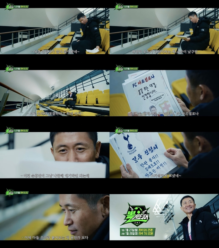 [스포츠서울 | 원성윤 기자] 대한민국 축구 레전드들의 풋살 도전기 ‘뽈룬티어’의 감독 이영표가 손흥민의 소속팀 토트넘에게 대결을 제안(?)받고 ‘결투 신청’ 꿀팁을 귀띔했다.