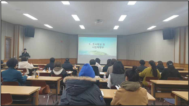 이날 교육에는 사업체 조사의 성공적인 수행을 위해 조사원들을 대상으로 조사 지침과 조사 요령을 안내하고, 원활한 면접 조사를 위한 현장 조사 실습도 병행했다.