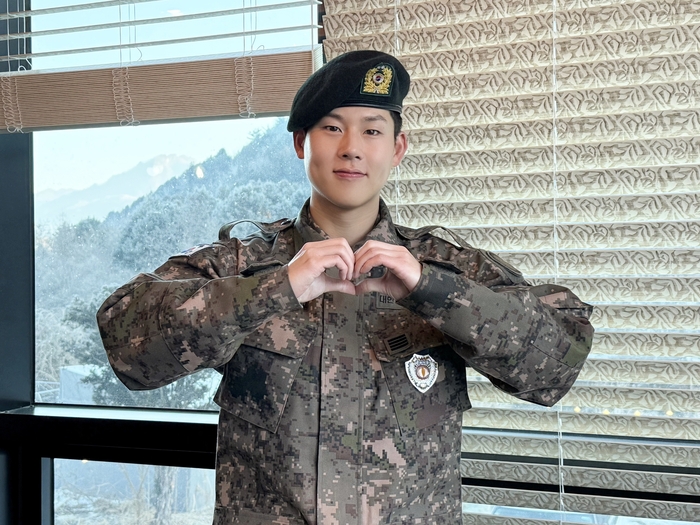 공개된 사진에는 주헌이 군복을 입은 채 거수경례, 브이, 하트 등 다양한 포즈를 하는 모습이 담겨 있다.
