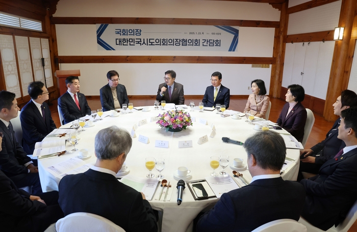 [스포츠서울 | 이상배 전문기자] 23일 우원식 국회의장은 국회 사랑재에서 대한민국 시도의회의 장단협의회 안성민 회장(부산광역 의회 의장) 등 9개 광역의회 의장들을 만나 지방분권과 민생 강화 방안 등에 대해 논의했다.