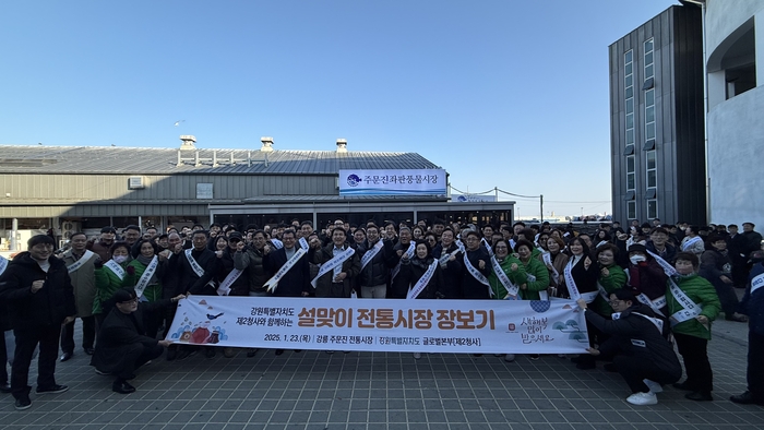 [스포츠서울ㅣ춘천=김기원기자]강원특별자치도 글로벌본부(제2청사, 본부장 손창환)는 설 명절을 맞아 1월 23일(목) 강릉 주문진 전통시장에서 지역경제 활성화를 위한 장보기 행사를 개최했다.