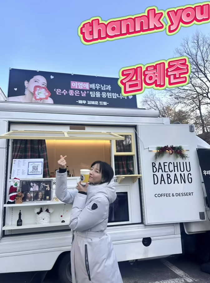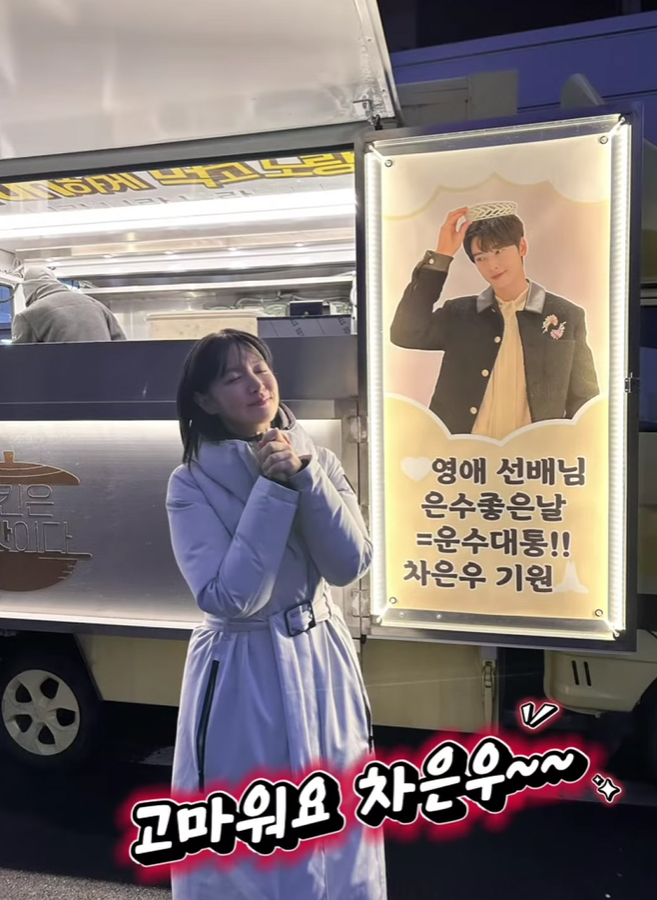 이영애는 23일 자신의 SNS에 “고마워요 차은우~~”, “Thank you 김혜준” 이라는 글과 함께 여러 장의 사진을 게재했다. 통 큰 선물을 한 후배들에 깜찍한 손하트 포즈와 두손 모아 감사함을 전하며 애정을 드러냈다.