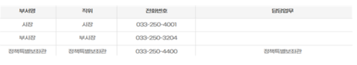 이에 따라 춘천시는 홈페이지에 공개했던 부서명, 직위, 이름, 전화번호, 담당업무 중 이름을 삭제한다.