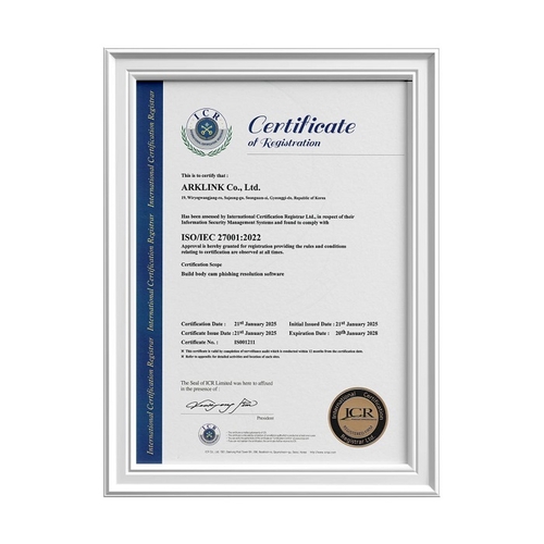 ISO/IEC 27001은 정보보호 관리 체계의 수립, 구현 및 유지에 대한 국제 표준으로, 기업이 정보보호 리스크를 체계적으로 관리할 수 있도록 요구하는 인증이다. 아크링크는 몸캠피싱 피해 대응 소프트웨어 구축을 위한 보안 시스템의 신뢰성과 안정성을 검증받으며, 엄격한 심사를 거쳐 이번 인증을 취득했다.