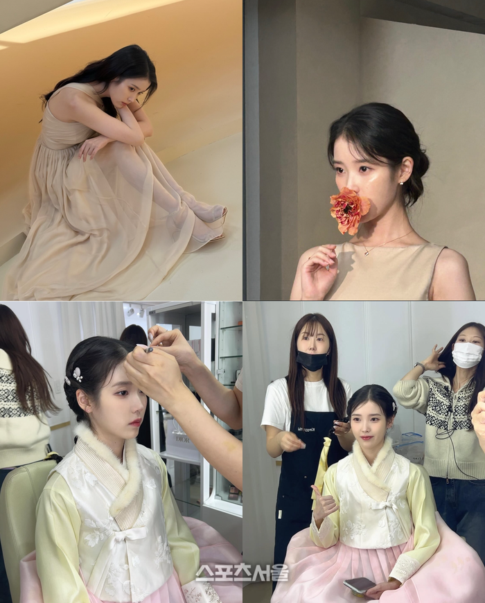 아이유는 드레스부터 한복까지 화보 및 방송 촬영 현장에서의 우아한 모습을 뽐냈다.