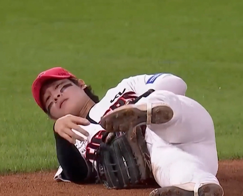 1회말 1사 후 상대 김한별의 타구를 몸을 날려 유격수 라인드라이브 아웃 처리했다. 아웃시킨 뒤 자신의 호수비에 감탄한 모습이 방송을 타 웃음을 주기도 했다.
