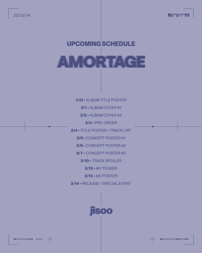 지수는 오는 2월 14일 오후 2시 국내외 전 온라인 음원 사이트를 통해 미니앨범 ‘AMORTAGE(아모르타주)’를 발매한다.