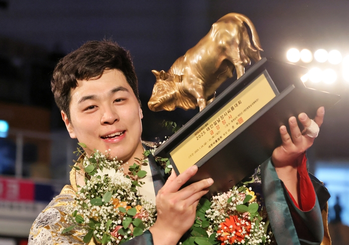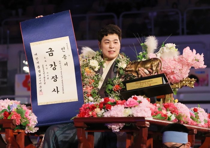 최정만은 27일 충남 태안군 태안종합실내체육관에서 열린 ‘위더스제약 2025 태안설날장사씨름대회’ 금강장사 결정전(5전 3선승제)에서 권진욱(30·태안군청)을 3-2로 꺾고 금강장사에 등극했다. 이로써 최정만은 통산 22번째 ‘금강장사’ 황소 트로피를 품었다.