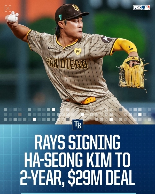 메이저리그 공식홈페이지(MLB닷컴)와 폭스뉴스, ESPN 등은 30일(한국시간) “김하성이 탬파베이와 2년 총액 2900만달러(약 420억원)에 계약했다”고 일제히 전했다.