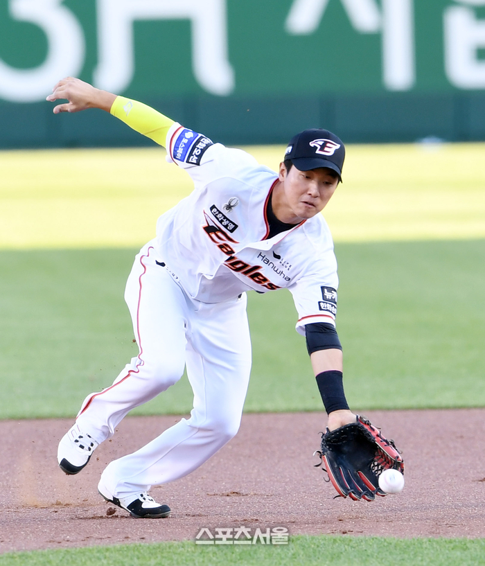 1회 무사 1루 상황에서 상대 오스틴을 병살타 처리한 것을 시작으로 2회 1사 1,2루 상황에서 상대 안익훈을 타구를 잡아 안정적으로 병살 처리했다.