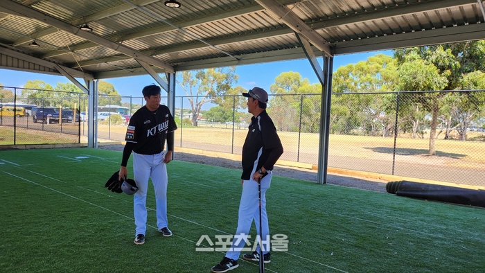 이날 그는 세 번째 불펜 투구를 했다. KT 이강철 감독을 비롯해 김태한 수석코치, 제춘모 투수 코치 등이 한자리에 모여 주의깊게 관찰했다. 더욱이 이 감독이 직접 지도하며 투구 밸런스와 동작 등을 짚었다. 한 번 피드백을 받을 때마다 구위가 더 좋아지는 느낌을 받았을 정도.